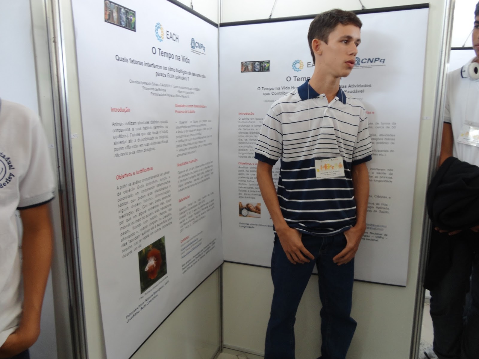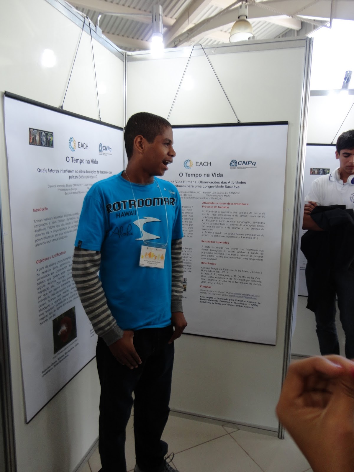 A experiência dos cinco alunos da professora Cleonice Silveira, da Escola Moreira e Silva - CEPA, na Feira de Ciências O TEMPO NA VIDA da USP foi bastante enriquecedora. Cada aluno teve a oportunidade de apresentar seu projeto de pesquisa, aos professores do Grupo Multidisciplinar de Desenvolvimento e Ritmos Biológicos da Universidade de São Paulo, através de pôster. Destes, recebendo a experiência e sugestões para aprofundamento de sua pesquisa.