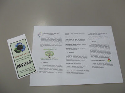 Folder e marca texto produzidos por alunos da Escola Laura Dantas e distribuidos no CEPA