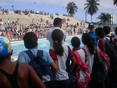 Às 8h cerca de 400 alunos do PARQUE AQUÁTICO do CEPA participaram de uma competição saudável no FESTIVAL DE NATAÇÃO. O Felipe da Escola Afrânio Lages tirou em 1º lugar.