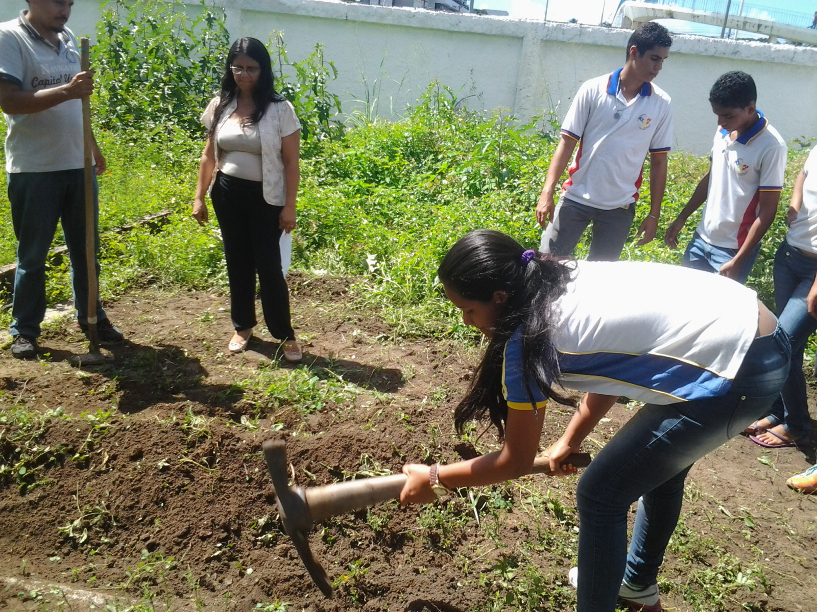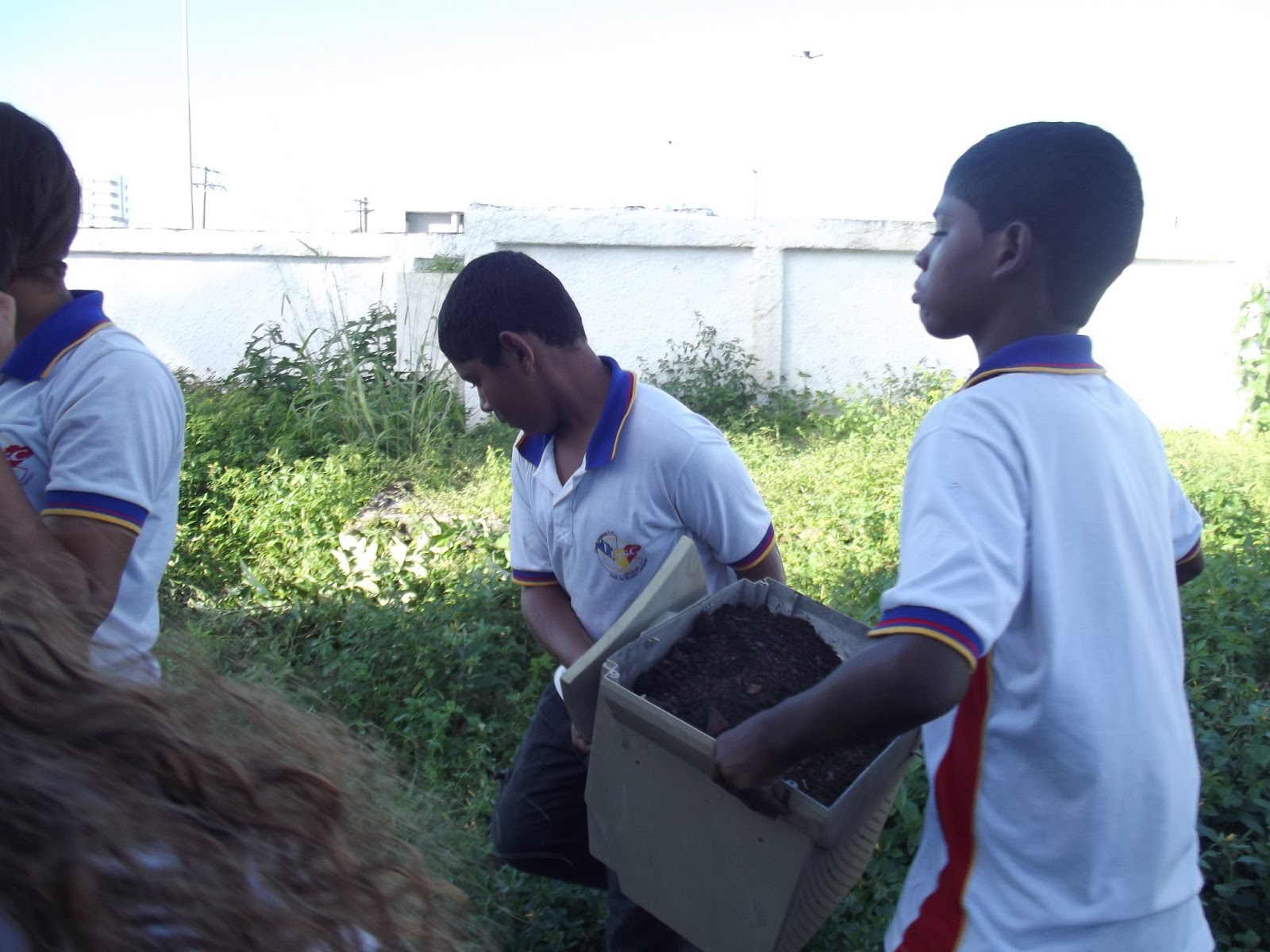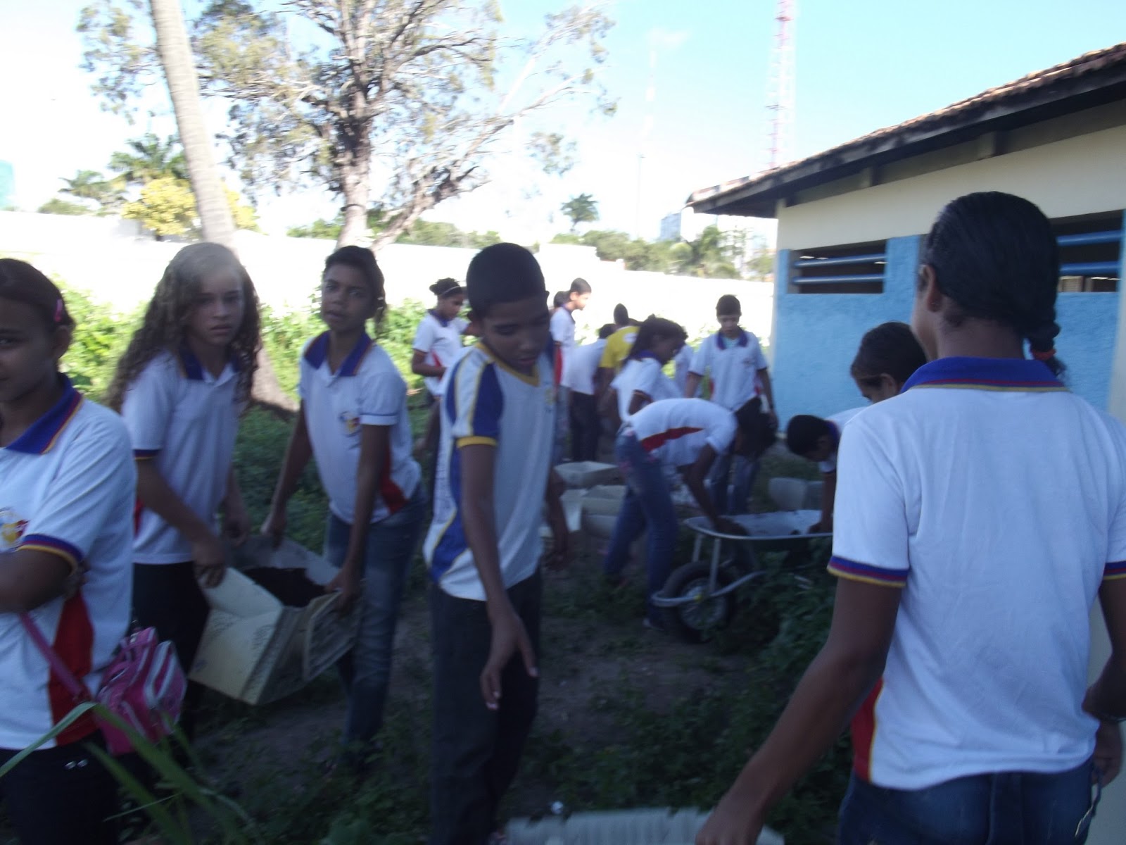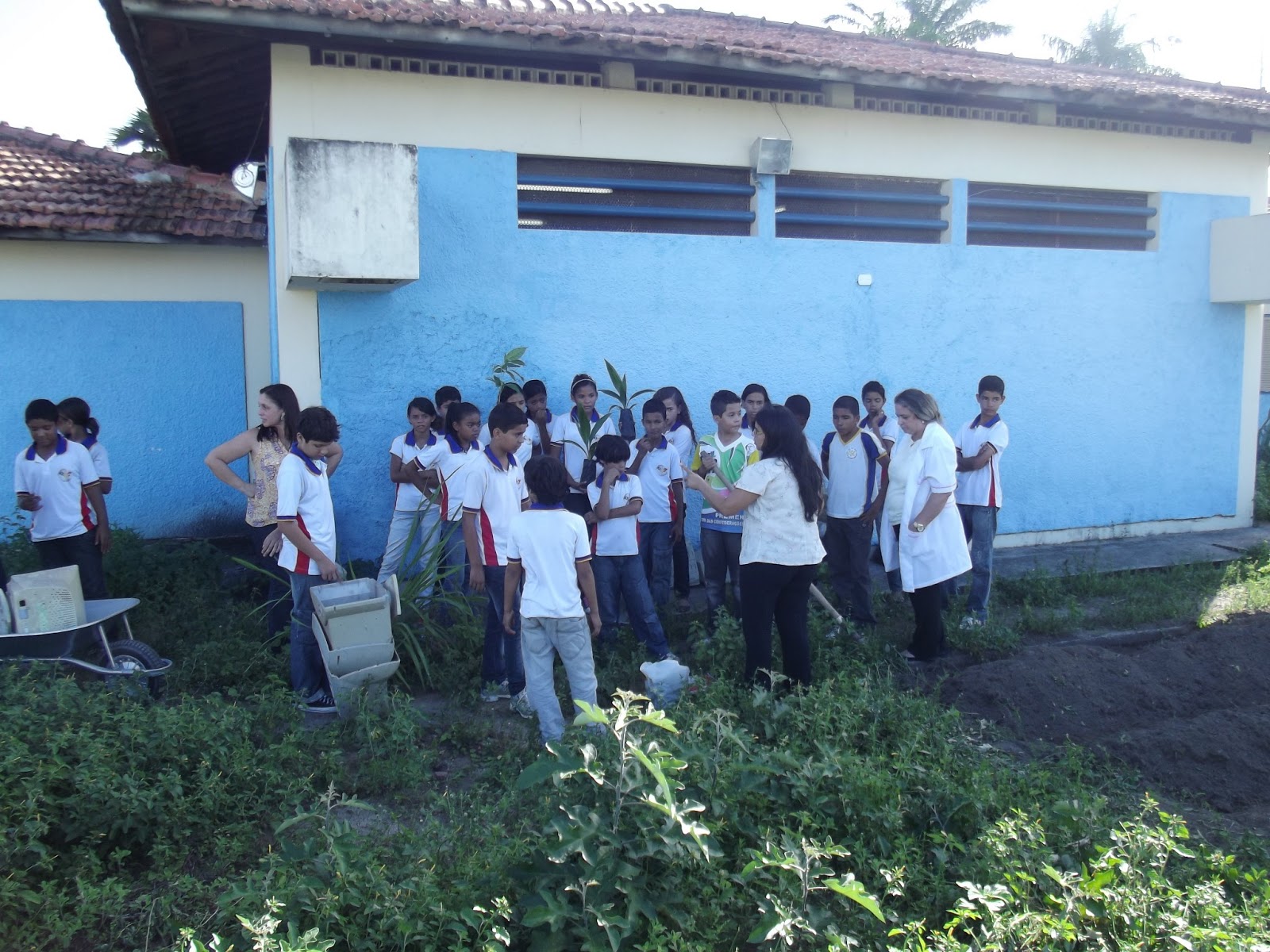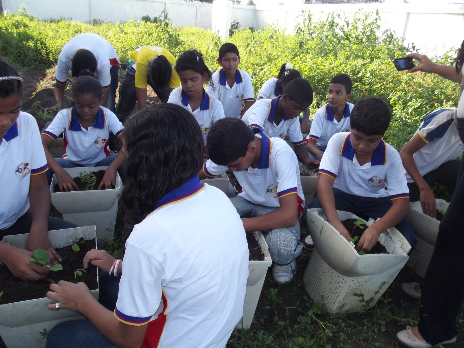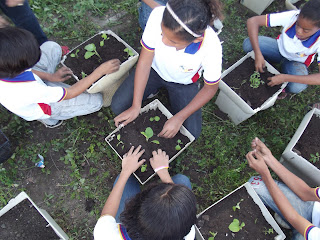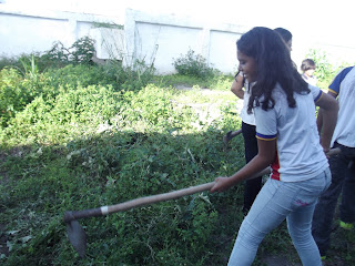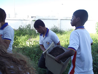 | Pela manhã os alunos já haviam plantado macaxeira (aipim) |
